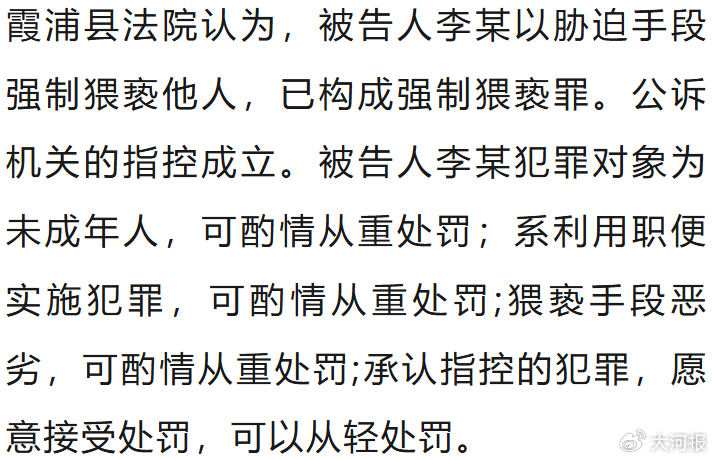 3月21日,霞浦县公安局干系东谈主士告诉新黄河记者,刻下李某的一审判决还是判下来了,当今在获胜期内,等判决获胜后就开除。