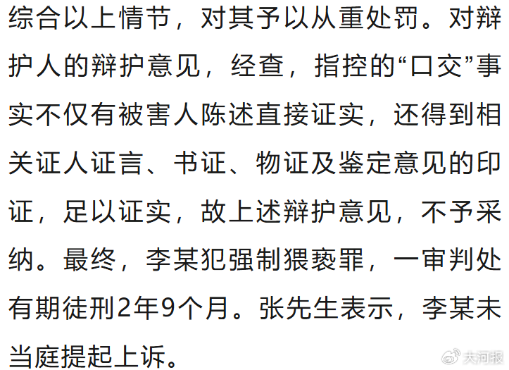 2026年3月16日,李某因犯强制猥亵罪,被法院判处有期徒刑2年9个月。张先生称,李某当庭未拿起上诉。